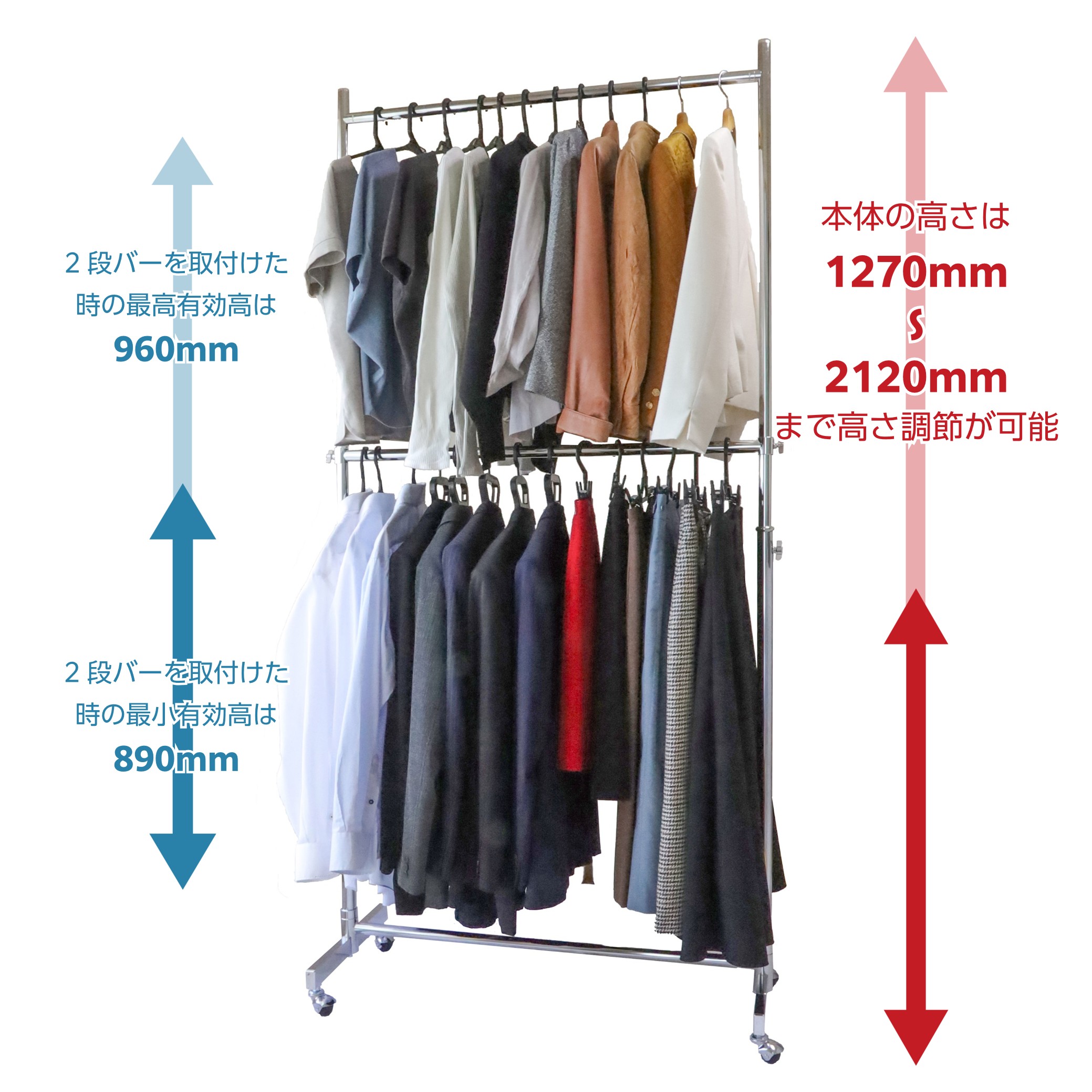 ハンガーラックストロンガー専用2段バー 一覧 [HRP-2-bar]